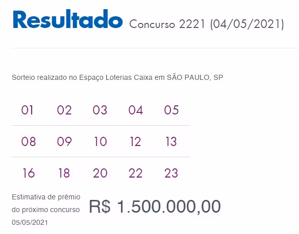 Conforme o site da Caixa, a estimativa para o próximo concurso é de R$ 1,5 milhão.
