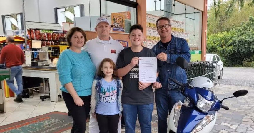 Moto 0km de promoção da CDL de Brusque é entregue ao ganhador em Botuverá 06/06/2022 • Redação O Município