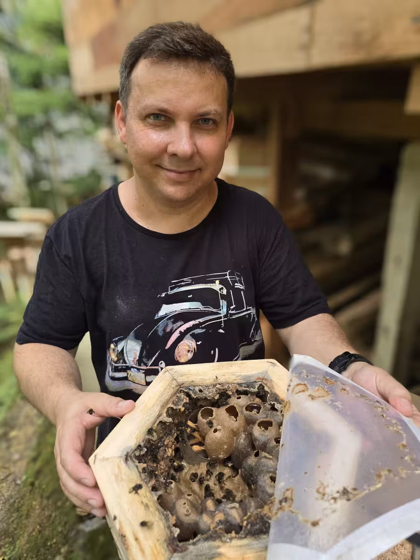Luciano Hodecker é muito mais do que um meliponicultor; ele é um artista, guardião das abelhas, além de um sonhador que constrói, com suas mãos e seu coração, pontes entre o homem e a natureza.