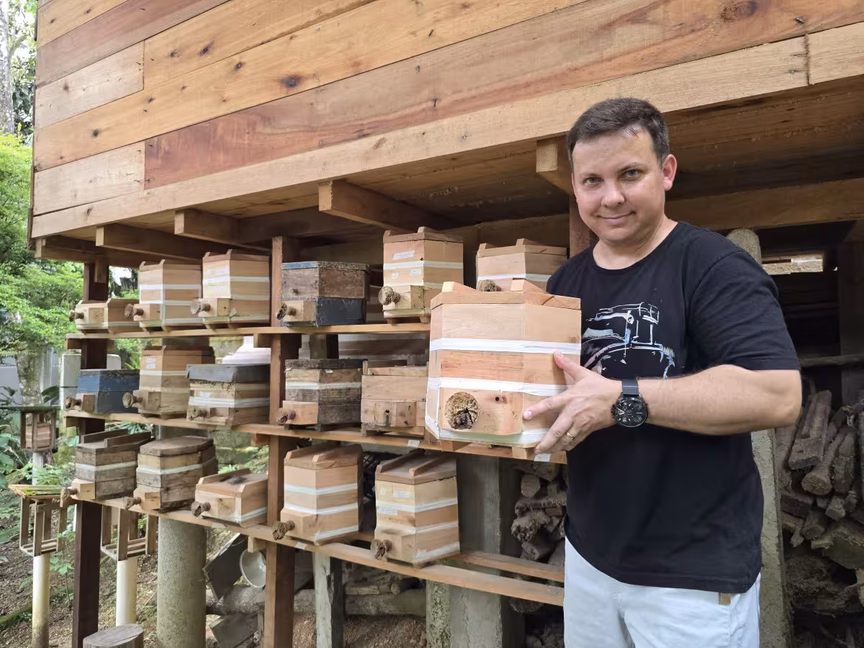 Abelhas sem ferrão: conheça a paixão do brusquense que mantém 100 colmeias
