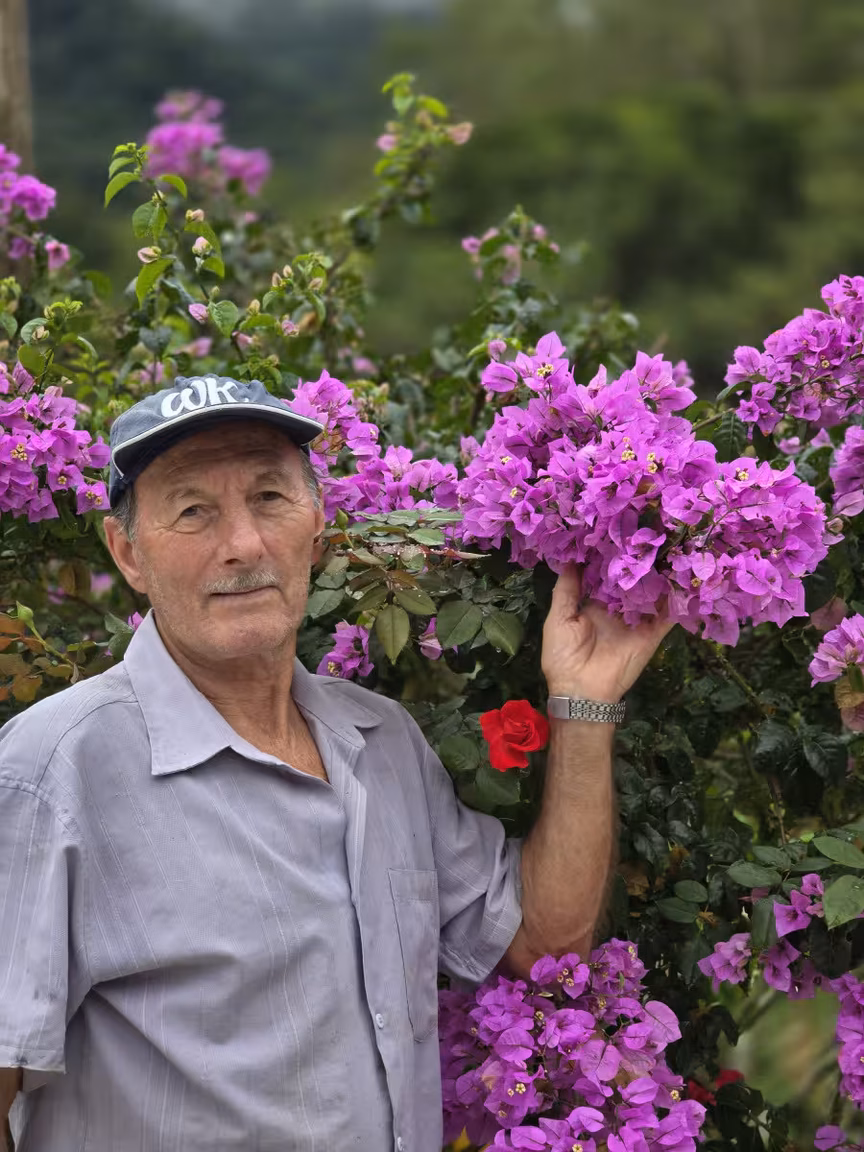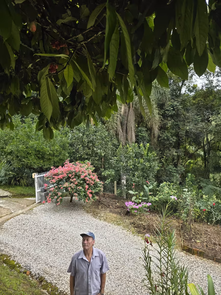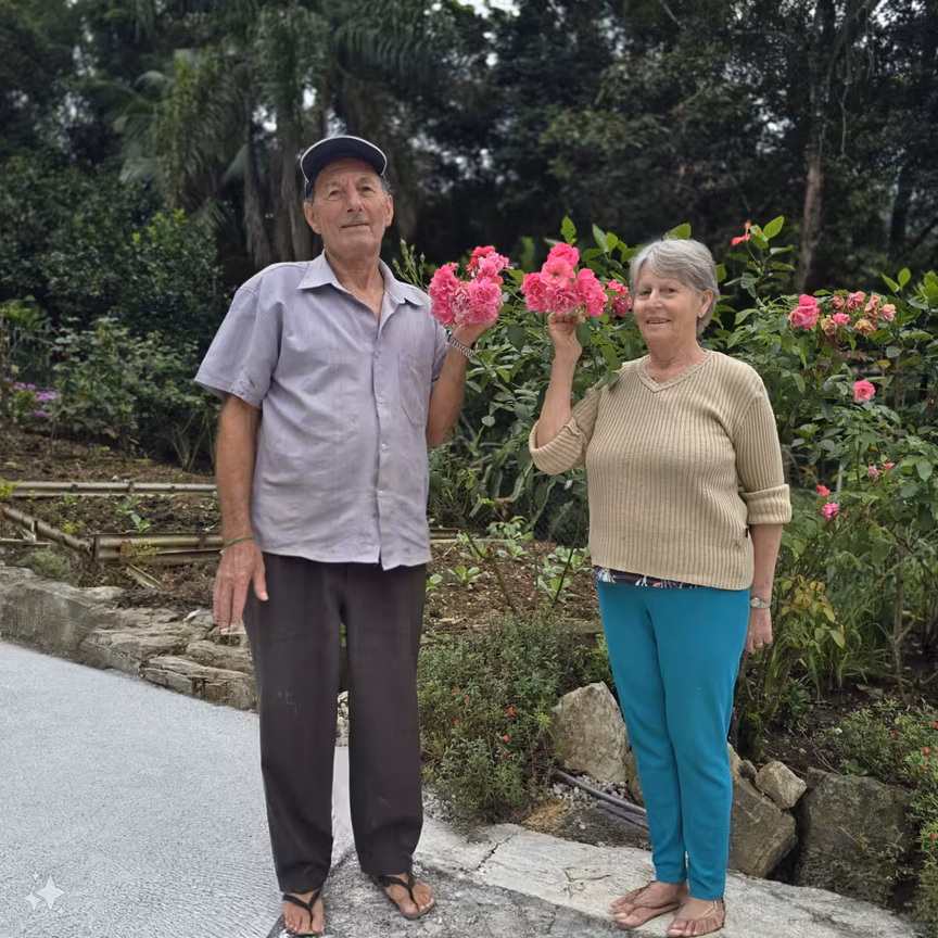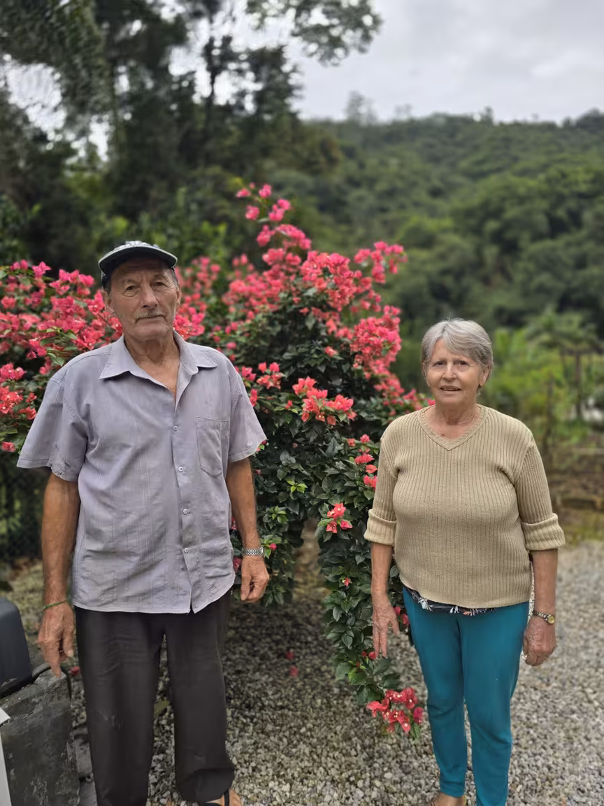 E Francisco, seu esposo dedicado, é o braço forte que auxilia em todas as necessidades, desde o transporte de itens pesados até a construção de abrigos para as plantas.