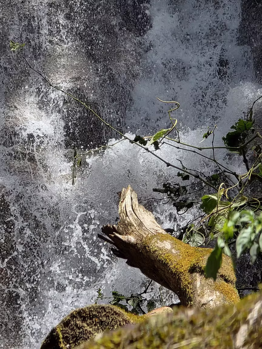 Os registros, pois, ampliam o olhar sobre o cenário retratado, evidenciando detalhes da queda d’água e do ambiente natural que a envolve.