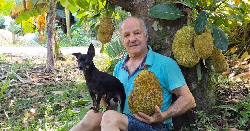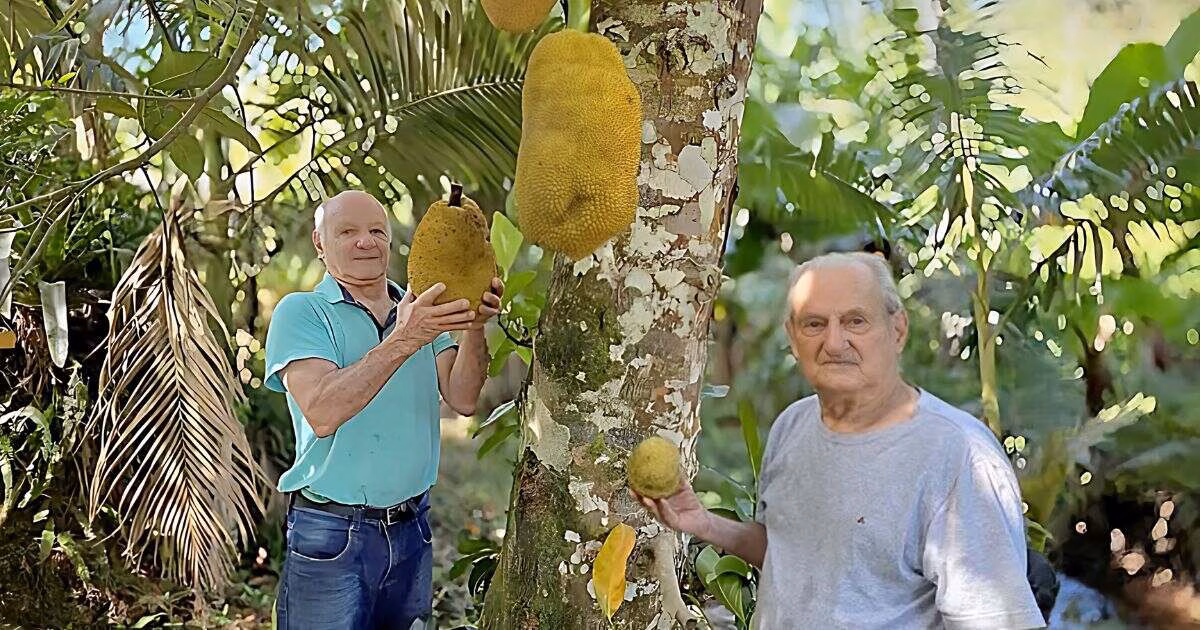 A jaqueira integra a área pertencente ao senhor Aldo Dada, de 73 anos, responsável pelo cuidado de uma extensa variedade de espécies frutíferas mantidas na propriedade.