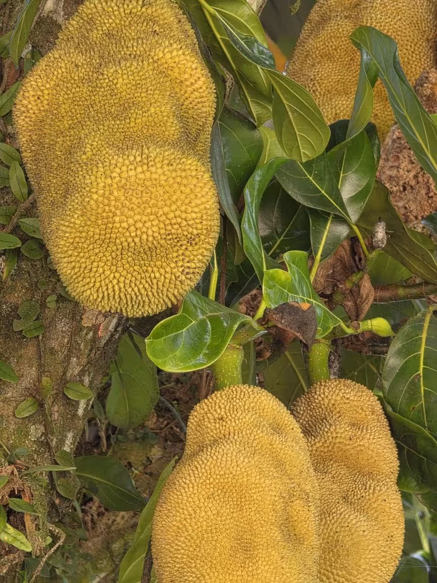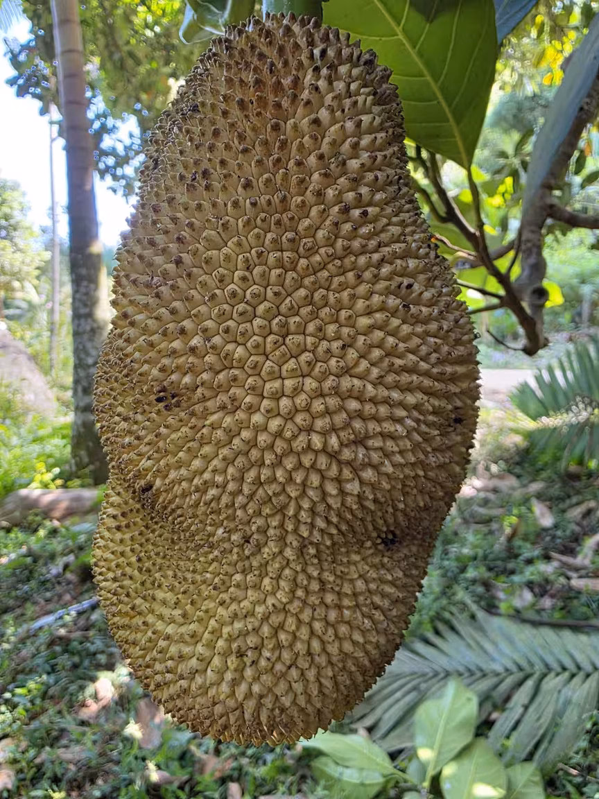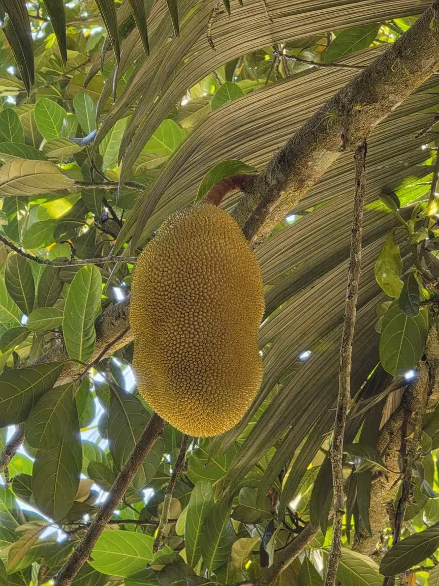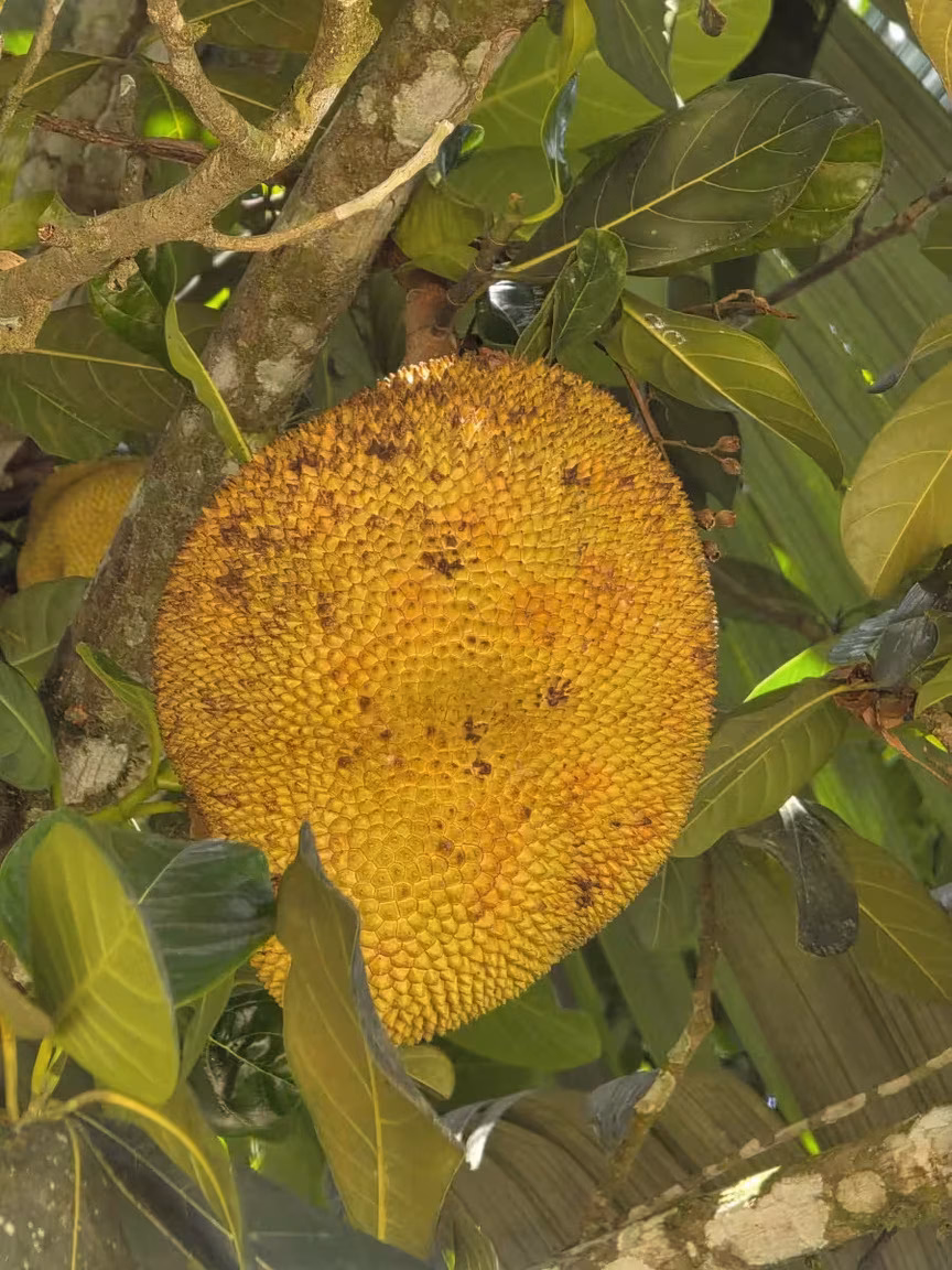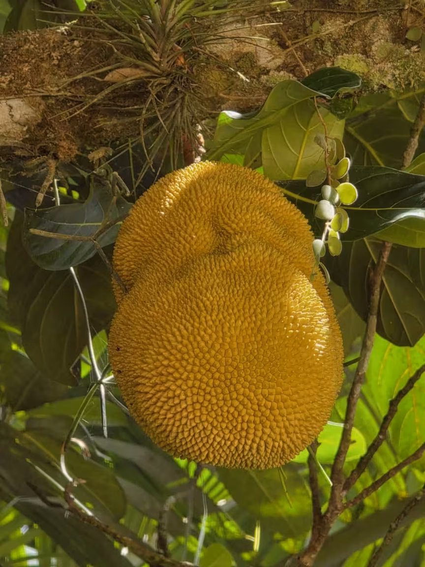 Ainda assim, a presença do pé de jaca se sobressai pela produtividade e constância com que os frutos se desenvolvem ao longo do ciclo anual, característica que reforça o papel da árvore como elemento central da paisagem do entorno.