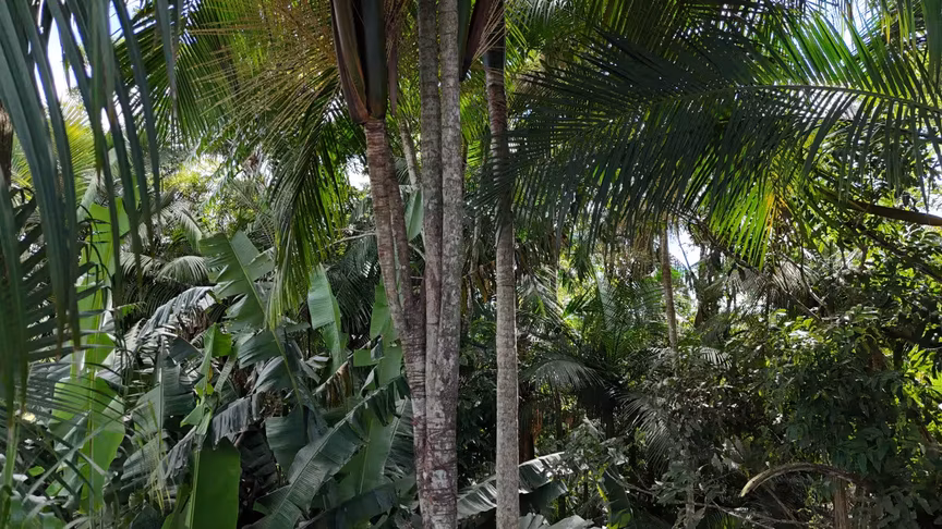 A espécie juçara exerce função essencial na floresta, já que seus frutos servem de alimento para aves que dispersam sementes e favorecem a regeneração natural.