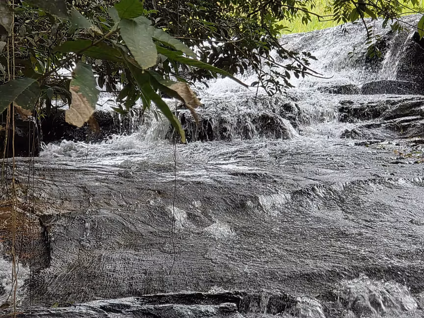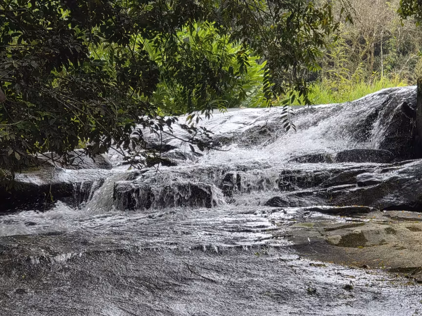 A piscina formada pelo riacho e a queda d’água cristalina eram o alívio perfeito para o calor.