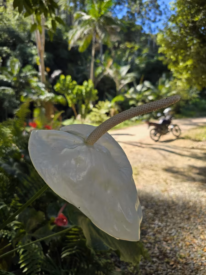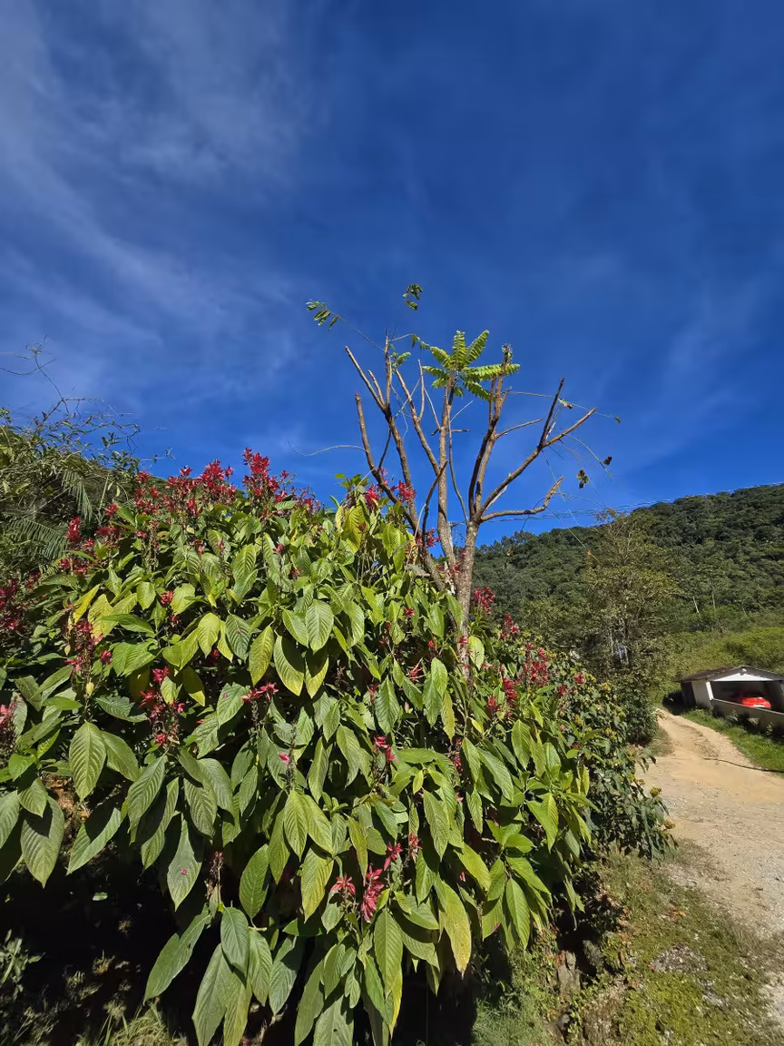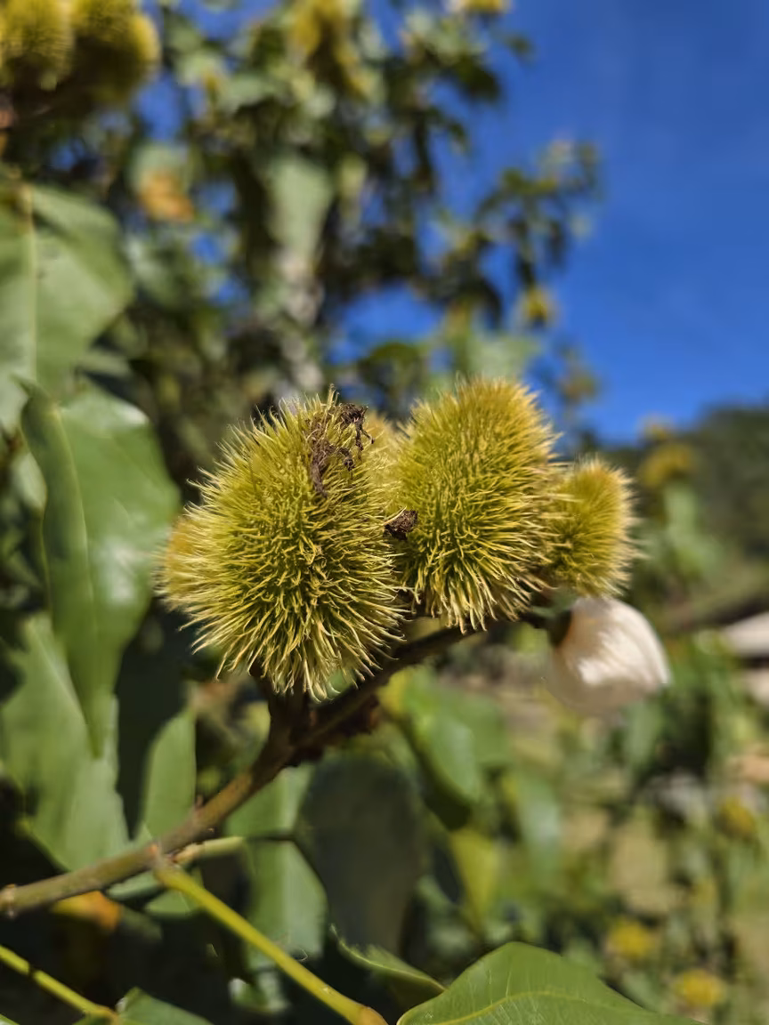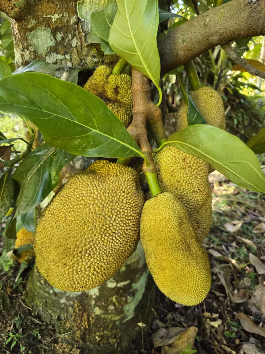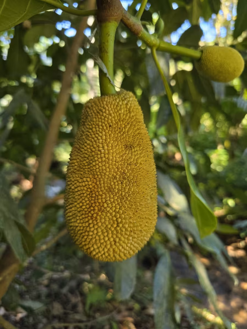 Em meio a essa paisagem idílica, não podemos ignorar a presença majestosa do pé de jaca, carregado com os frutos dourados, que parecem sussurrar segredos de abundância e fertilidade.