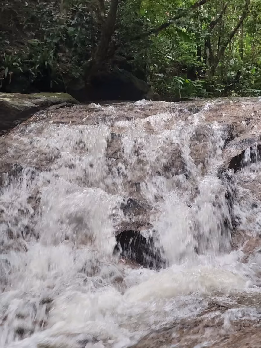 Ao chegar, o visitante será imediatamente surpreendido pelo encanto das quedas d'água, que se desdobram em múltiplas camadas e criam um som relaxante que ecoa por todo o local. As rochas e o piso de pedras tornam o espaço ainda mais deslumbrante. Enquanto o verde das árvores proporciona um cenário perfeito para fotos.