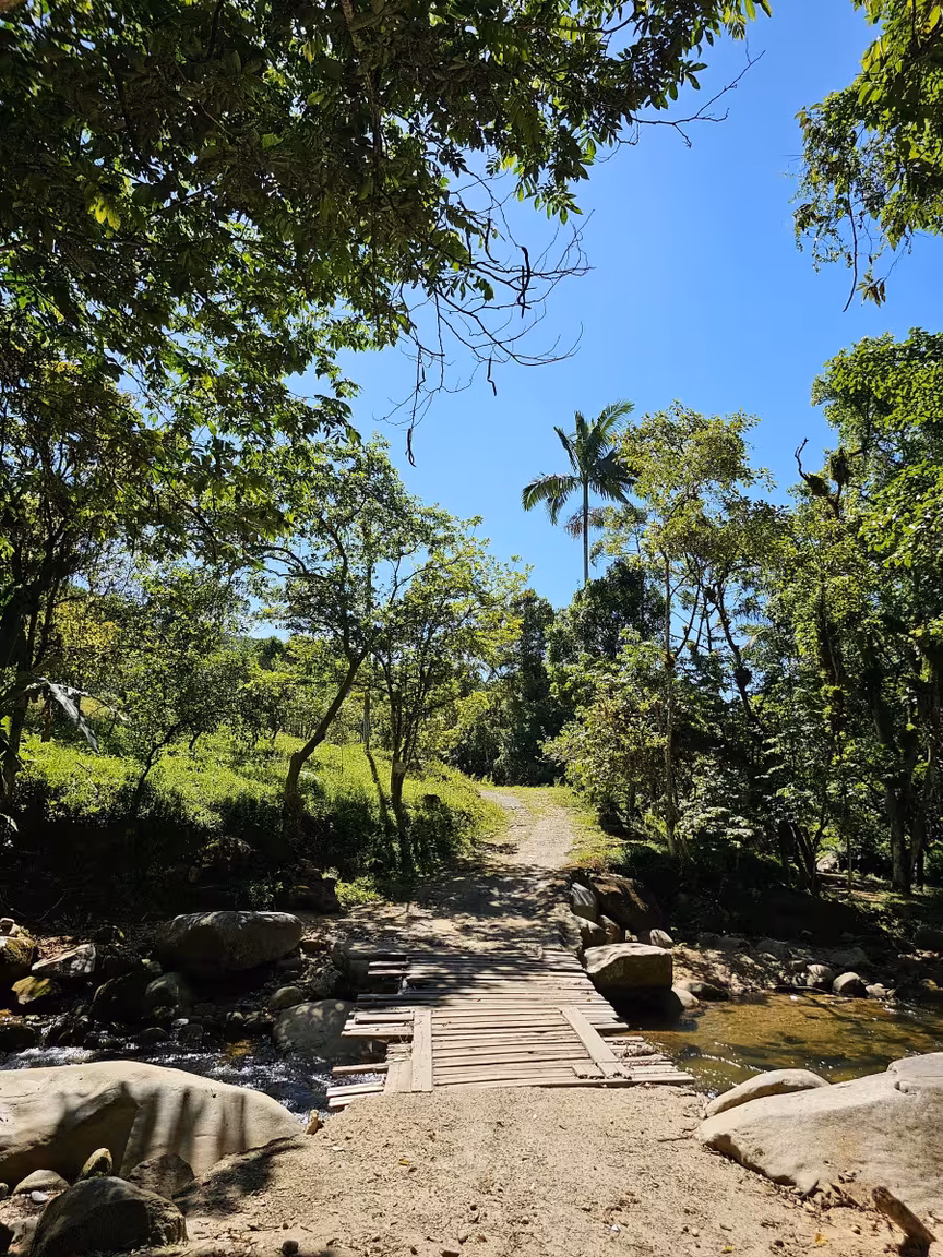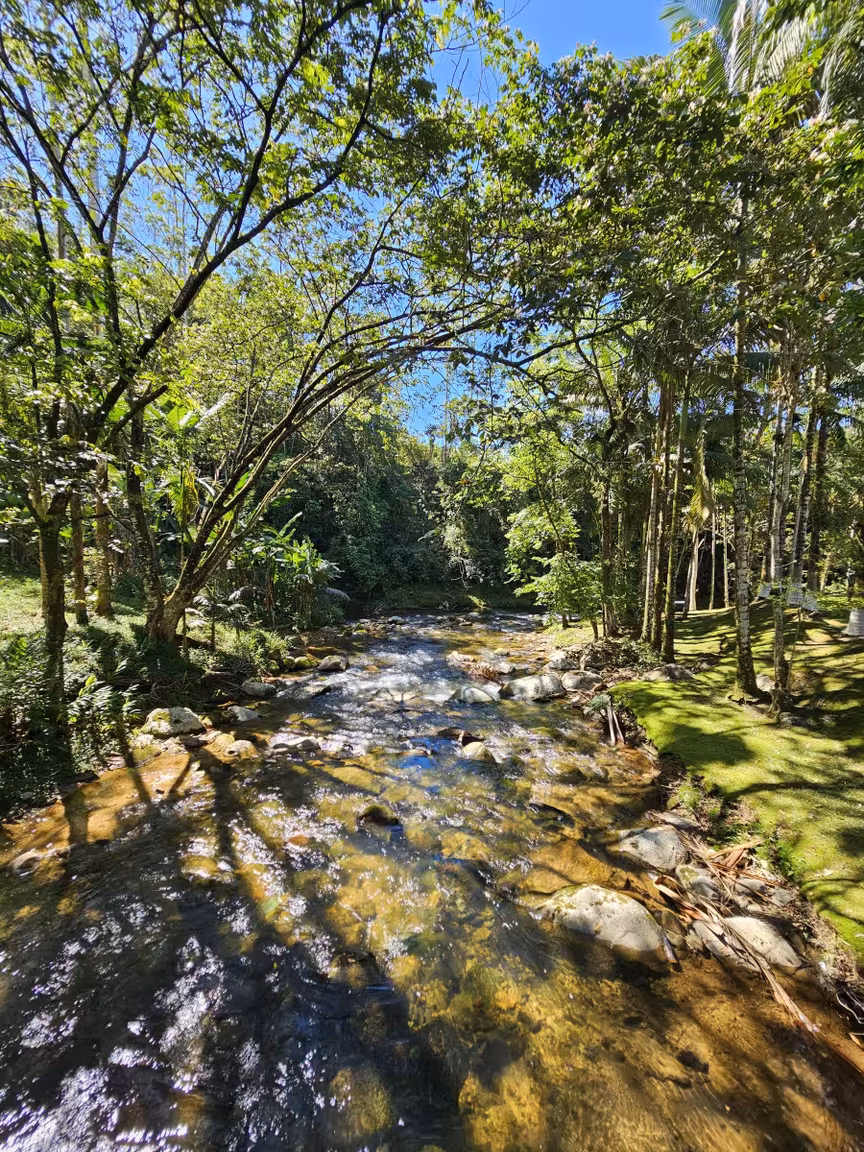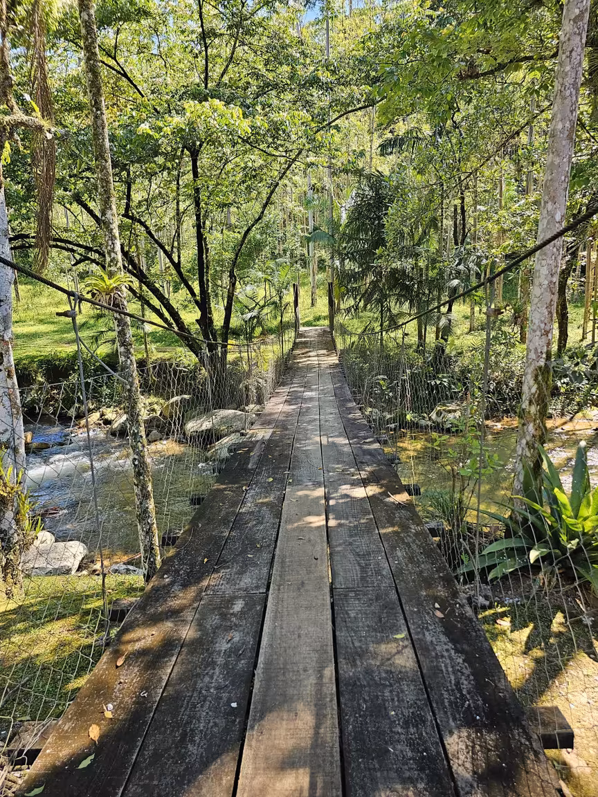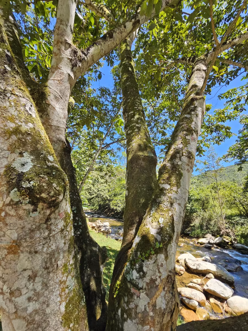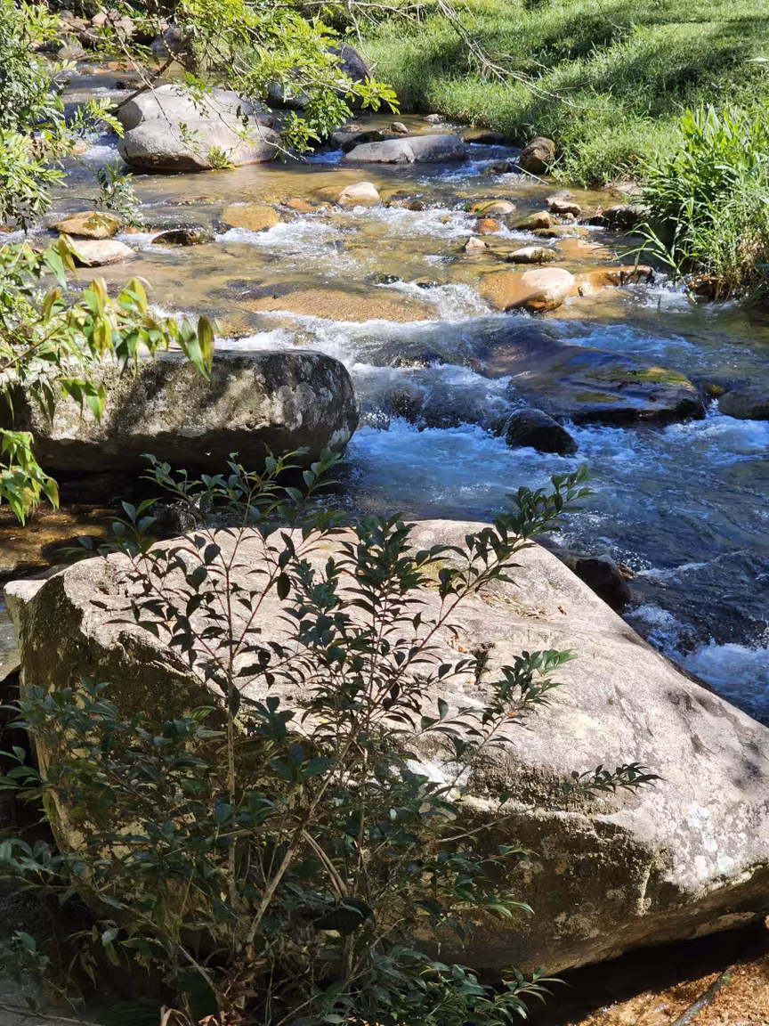 Os raios de sol, filtrados pelas folhas, criam jogos de luzes e sombras, enquanto o som dos riachos parece compor uma melodia exclusiva para aqueles que se aventuram por esses caminhos.