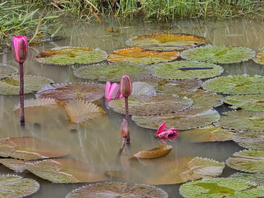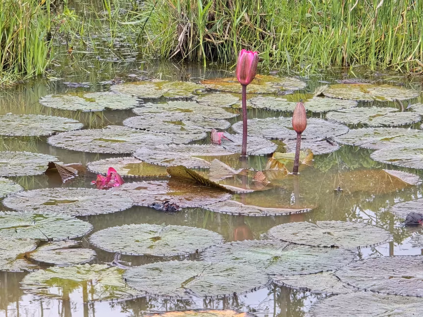 Sob sua generosidade, pudemos não apenas acessar, mas registrar em detalhes essas plantas icônicas, que se estendem em suas folhas flutuantes, como se quisessem abraçar o local.
