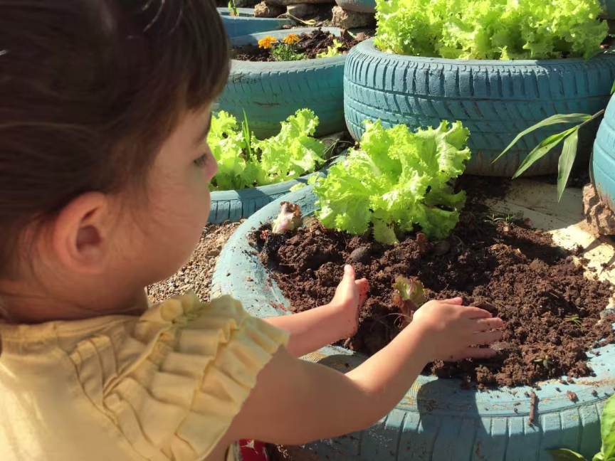 Localizado no bairro Fortaleza, em Blumenau, o CEI já trabalhava com uma horta e um jardim sensorial desde 2016. Entretanto, a preocupação em tornar a conexão com o meio ambiente parte da pedagogia da instituição fez com que o tema se aprofundasse cada vez mais.