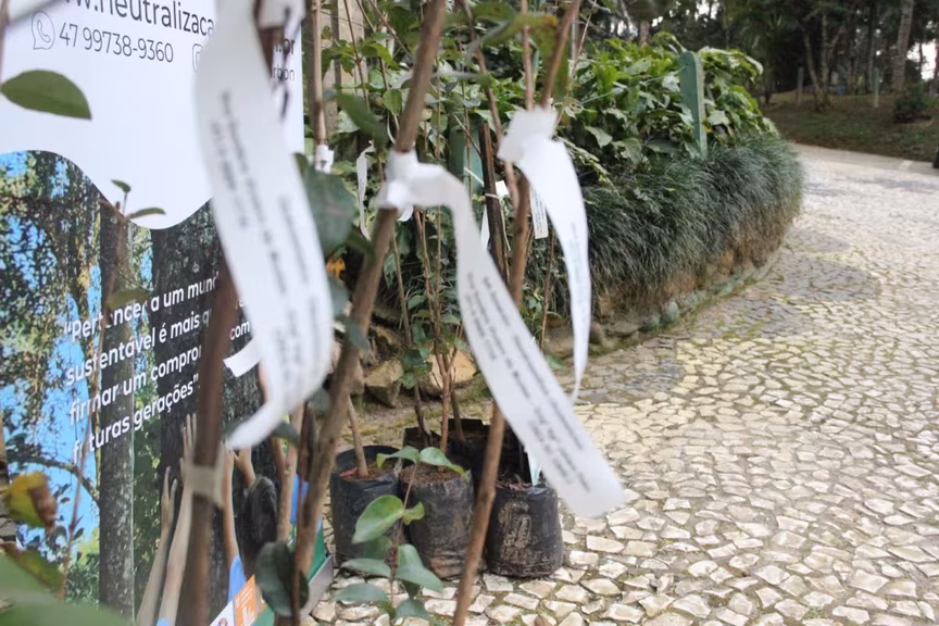 Trilha do Zoobotânico de Brusque recebe 15 novas árvores para compensar emissões de carbono da Fairtec