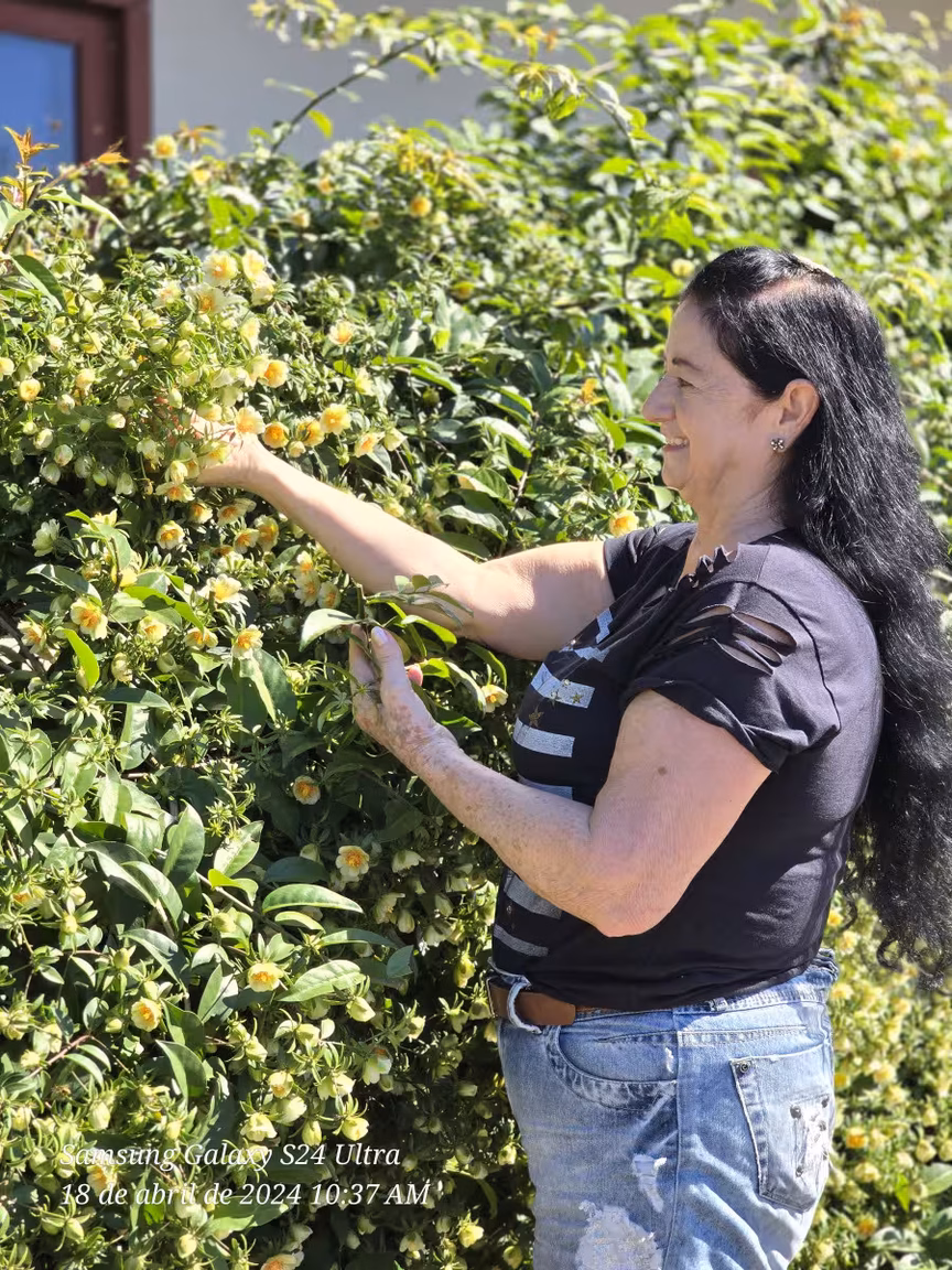 A simplicidade e a facilidade no cuidado destas flores encantam Marilete. Com o conhecimento adquirido ao longo dos anos, ela assegura que o plantio e a manutenção das mudas são tarefas acessíveis a todos, requerendo apenas atenção às épocas adequadas de poda.