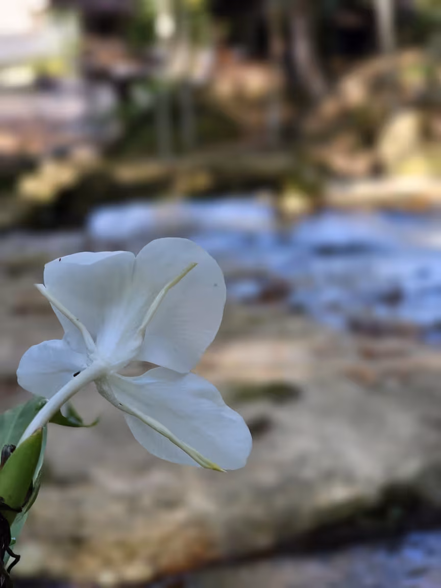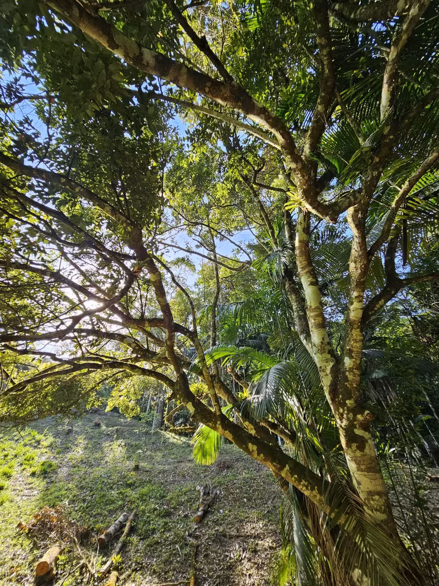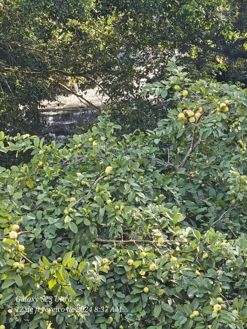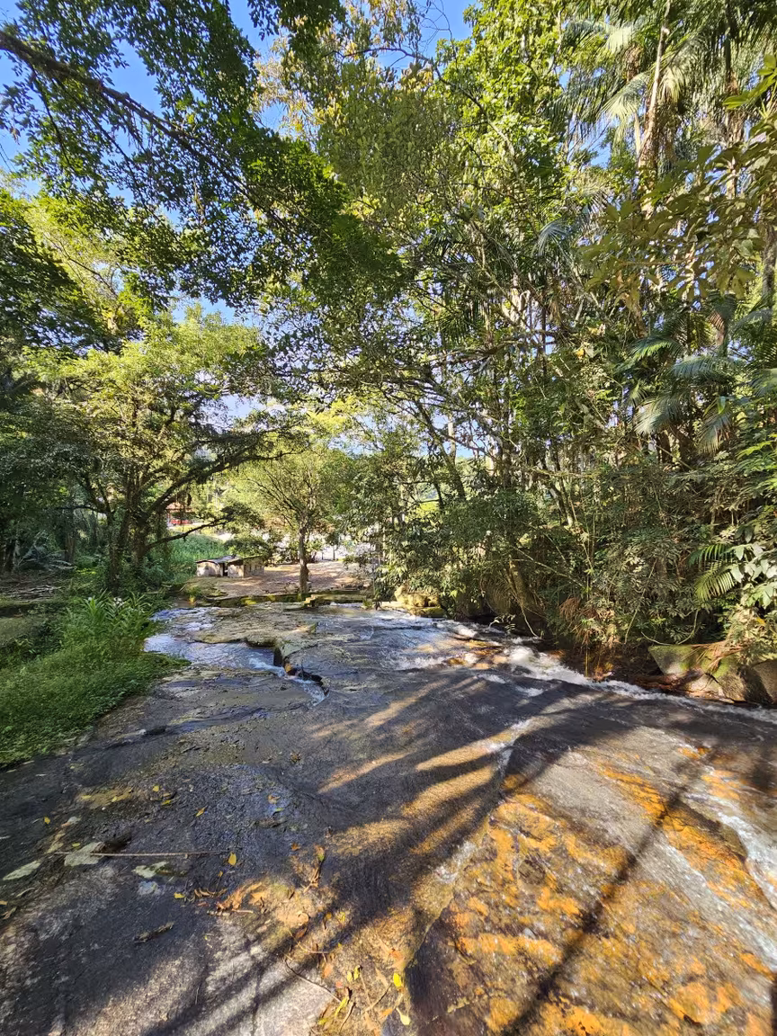 A vegetação exuberante emoldura todo o espaço, proporcionando uma proteção natural contra a ação direta dos raios solares, o que contribui para criar uma atmosfera serena e refrescante.