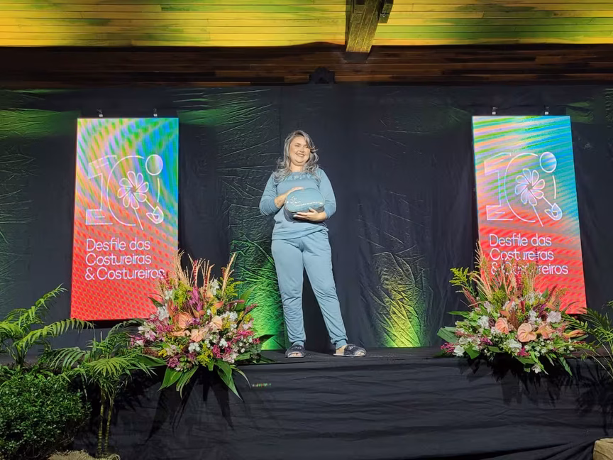“Calma na alma é um tema que escolhemos porque viemos muito acelerados após a pandemia, de tudo que aconteceu. Queríamos que as pessoas sentissem isso, que viesse essa ideia de natureza, de sentir, de estar presente e de aproveitar o momento. É isso que queremos passar para as pessoas: que elas tenham calma”, diz a presidente do Sindivest, Onésia Adriana Liotto.