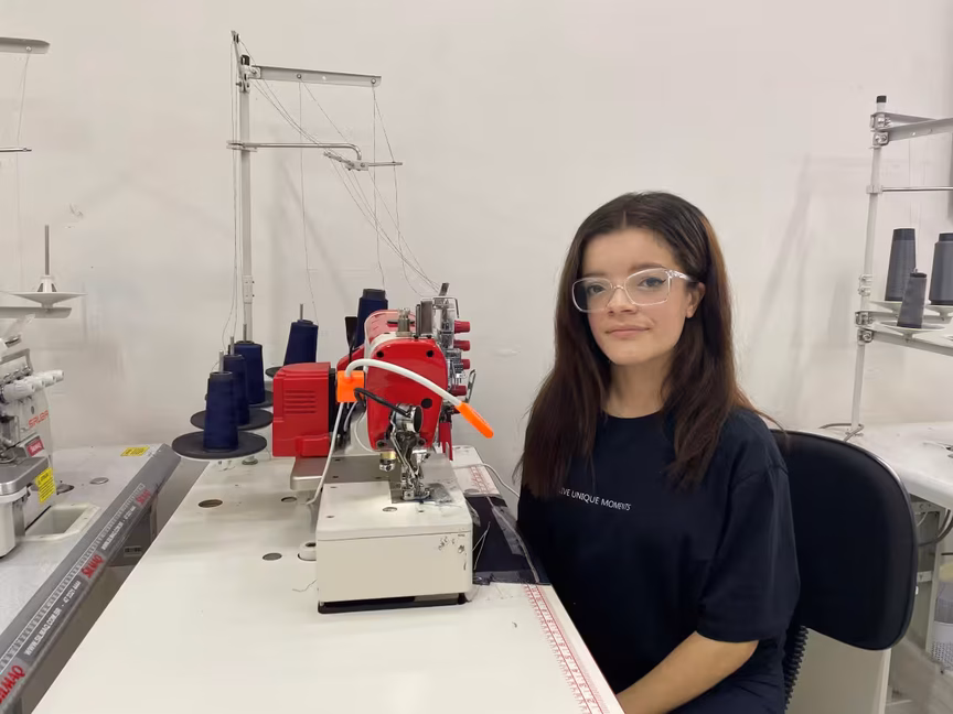Primeira costureira profissional de sua família, a jovem pretende seguir uma carreira na moda. Ela acredita que a especialização é algo essencial para a atividade.