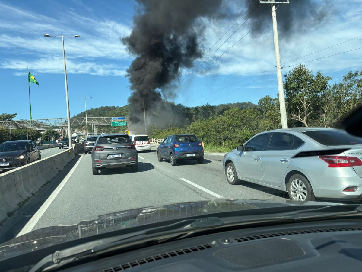 Um motociclista de 26 anos morreu após um acidente com um ônibus na manhã desta quarta-feira, 8, em Florianópolis. Com a colisão, o transporte coletivo acabou pegando fogo. O acidente ocorreu próximo ao acesso do Floripa Shopping, por volta das 8h50.