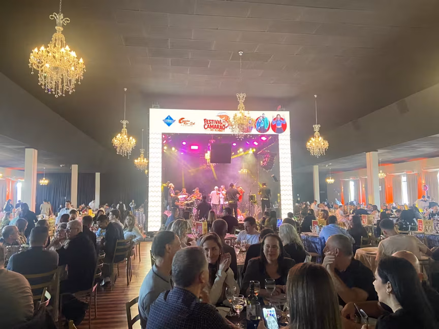 Unindo gastronomia de qualidade, música boa e um ambiente aconchegante, a 1ª edição do Festival do Camarão do Schmitt foi sucesso. Realizado no sábado, 29 de junho, na Sociedade Esportiva Santos Dumont, o evento, promovido pelo Schmitt Buffet & Eventos, reuniu um público de 750 pessoas para apreciar os mais variados pratos à base de camarão. Rodrigo Schmitt, sócio administrador do restaurante, conta que a ideia do evento surgiu em uma conversa informal com um amigo e fornecedor de peixes e frutos do mar. Com a experiência de eventos de sucesso em Brusque, o restaurante idealizou o festival como uma opção de lazer para famílias e grupos de amigos, tendo como foco a gastronomia e a música. "Queríamos proporcionar uma experiência semelhante aos nossos shows, onde servimos o cardápio na mesa para os clientes. O cardápio foi pensado em trazer os pratos com camarão em receitas variadas para curtirem o sábado com uma boa gastronomia e ótimas atrações musicais".
