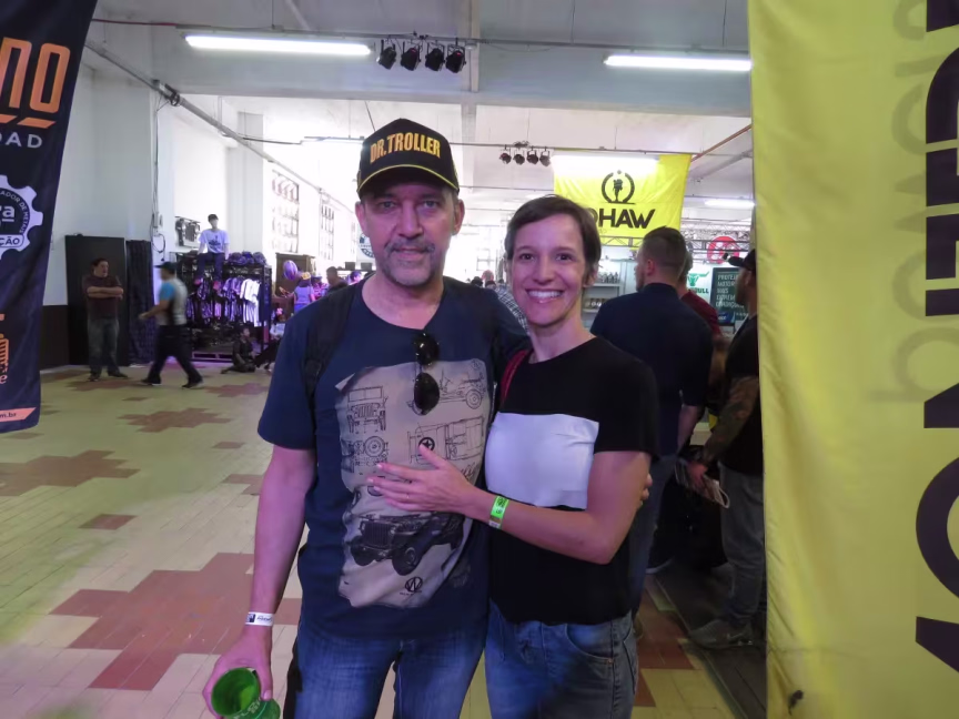 O casal Carlos Eduardo e Josi Ramoa, moradores de Brusque, contam que ficam na expectativa durante todo o ano até a chegada da Fenajeep. Eles conhecem alguns competidores e vêm torcer pelos amigos.