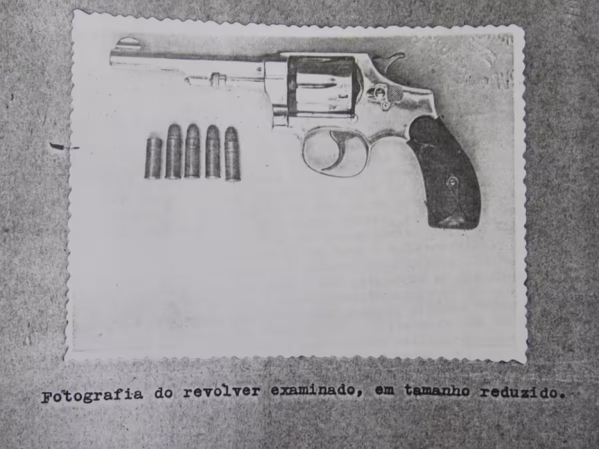Ao seguir na cena, ela percebeu que do lado direito do rosto de Ivo saía sangue e que ao lado da cama, no assoalho, estava um revólver.