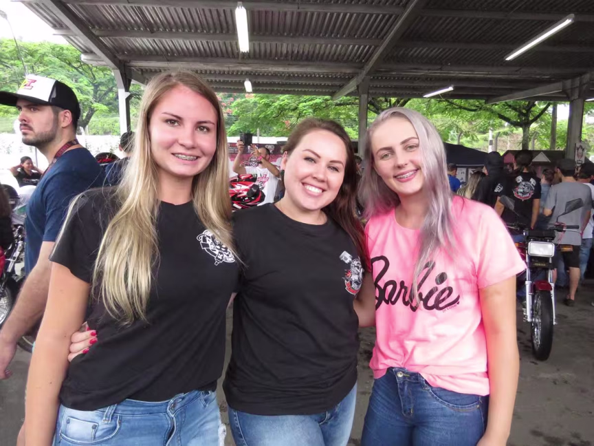 Integrantes do grupo Yamaloucos, de Blumenau, as amigas Dandara de Borba, Monique da Costa e Thaynara Eggert são figurinhas carimbadas no evento em Brusque, já que elas participaram nos últimos quatro anos.