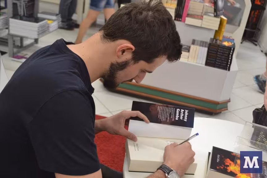 A lista de jovens autores brusquenses só aumenta. Sábado, na Livraria Graf, tivemos o lançamento do primeiro livro da saga As Crônicas do Novo Império, A Ascensão dos Derrotados, escrito por Johnny Archer Gamba – aproveito para pedir desculpas pelo erro na ordem dos seus sobrenomes na edição impressa do Like, Johnny! My bad! – e lançado pela Editora Chiado, de Portugal – que informa, em seu site, que Johnny, fã de crônicas medievais, começou a escrever essa história quando tinha 16 anos.