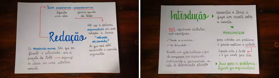Vamos por partes, amiguinhos; como Jack, o Estripador, vamos por partes. Primeiro, é importante pesquisarmos novas formas de apreender as matérias – em todas as ocasiões nas quais pudermos fazer isso. Mas também é imprescindível – isto é, es-sen-ci-al – que consigamos criar as nossas formas de aprender; precisamos descobrir como o nosso cérebro funciona. Então, obviamente, analisar o esboço de uma estrutura de texto dissertativo é, sim, uma ótima forma de respondermos a essa necessidade. Sobretudo porque percebemos que, para alguns, aquele método funciona... Não seria interessante se, a partir disso, começássemos a nos perguntar por quê?
