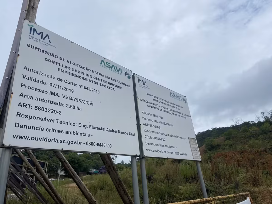 Em outubro de 2018, ano que seria o de inauguração do shopping, a Prefeitura de Brusque ainda aguardava documentos para liberar a construção. A licença ambiental foi concedida pelo Instituto do Meio Ambiente (IMA) em dezembro daquele ano.