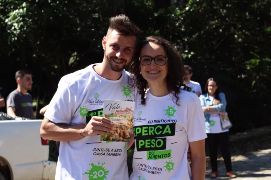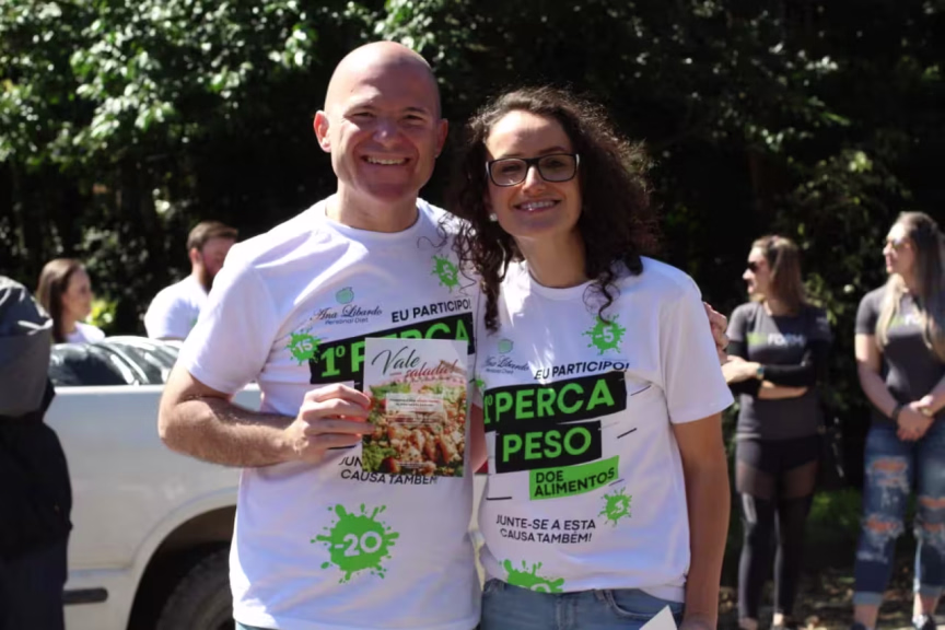 Perder peso e buscar uma vida saudável ganhou uma motivação a mais após a realização da primeira edição do “Perca Peso, Doe Alimentos”. Ana Paula Libardo, nutricionista e personal diet há 5 anos, e o marido Thalisson Rodrigo Eccel foram os organizadores do projeto que consistiu na doação de alimentos na mesma proporção da perda de peso dos pacientes de Ana. Por exemplo: se houve a eliminação de 10 quilos, o participante deveria doar 10 quilos de alimentos. Com isso, as 62 pessoas participantes doaram 645 quilos de alimentos que já foram encaminhados à Comunidade Bethânia, de São João Batista, em um evento de finalização do projeto que foi realizado na própria casa de Ana e Thalisson. Os organizadores se preocuparam em solicitar somente a doação de alimentos saudáveis para a entidade. Ana tem uma forma diferente de trabalhar: ela atende seus pacientes à domicilio. Porém, desta vez, o caminho foi o inverso. Neste evento, ela resolveu abrir as portas de sua casa para recebê-los. A ação aconteceu pela comemoração ao Dia do Nutricionista (31 de agosto) e ao Dia do Educador Físico (1º de setembro). Aliado a estas datas, o projeto surge também da vontade de um Brasil mais saudável, que se alimente melhor e com menos sedentarismo. A nutricinista Ana conta com o grande apoio e confiança dos seguintes educadores: Alisson Fumagalli, Forma Studio Personal, Camila Albani & Jackes Mello, WT Energy e Sérgio Grach.