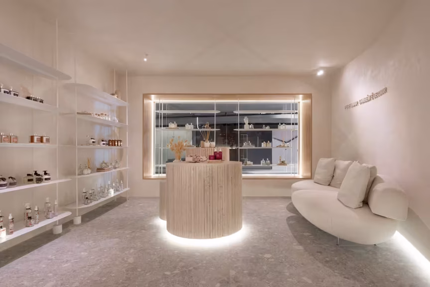 “Investimos em criar uma experiência íntima do visitante com a loja: um ambiente sensorial, leve, natural, minimalista e com personalidade”, observa a arquiteta. Além da experiência de vivenciar o ambiente, o visitante pode também adquirir os produtos Mels Brushes no interior da Loja Cor de Creme.