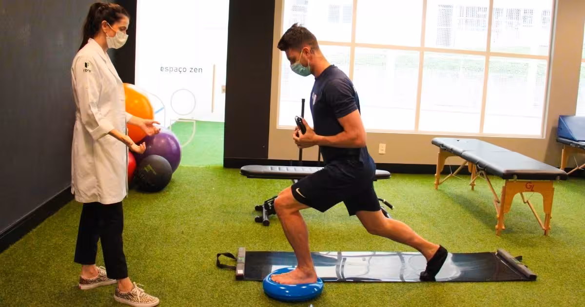 Maurício tem realizado duas sessões a cada dia de tratamento. Sua reabilitação esportiva tem ênfase na parte de propriocepção, equilíbrio e força, a fim de que ele consiga fortalecer o tornozelo para voltar a treinar sem sentir dor e reduzir o risco de repetir este tipo de entorse.