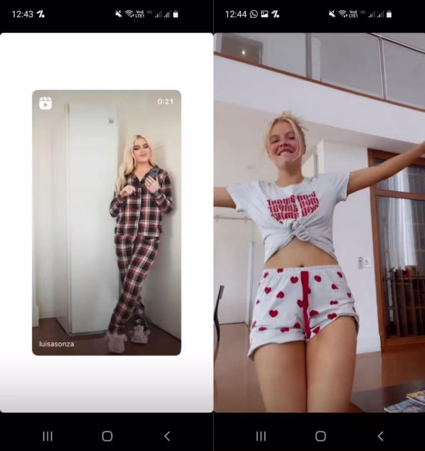 A cantora Luiza Sonza, com mais de 24 milhões de seguidores no Instagram, tem chamado a atenção com frequência pelas roupas escolhidas para postar seus stories, sempre com muita dança e bom humor. Na última semana, pelas redes sociais, mais uma vez ela apareceu fazendo uso de pijamas de uma indústria local, a Mensageiro dos Sonhos.