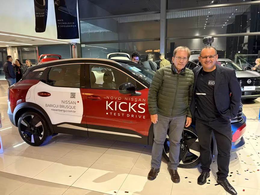 A Nissan Barigüi recebeu convidados em Brusque para o lançamento nacional do Nissan Kicks 2026. Os novos modelos do SUV foram lançados simultaneamente em todas as concessionárias Nissan, por meio de uma live com o CEO global da marca, Ivan Espinosa. O gerente da Nissan Barigüi de Brusque, Ademir Ferreira, destaca que o novo Kicks foi redesenhado para oferecer um visual mais contemporâneo e uma experiência de condução aprimorada.