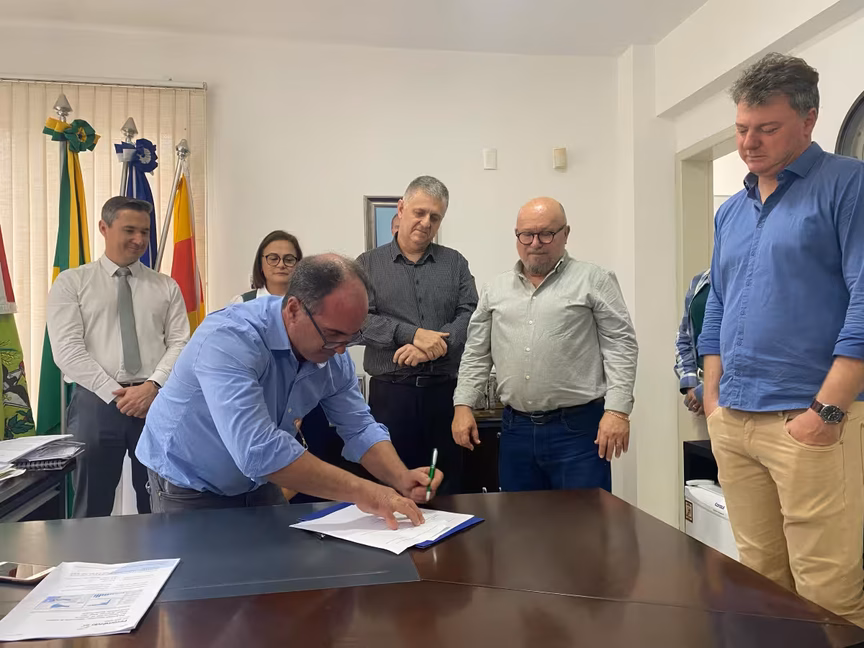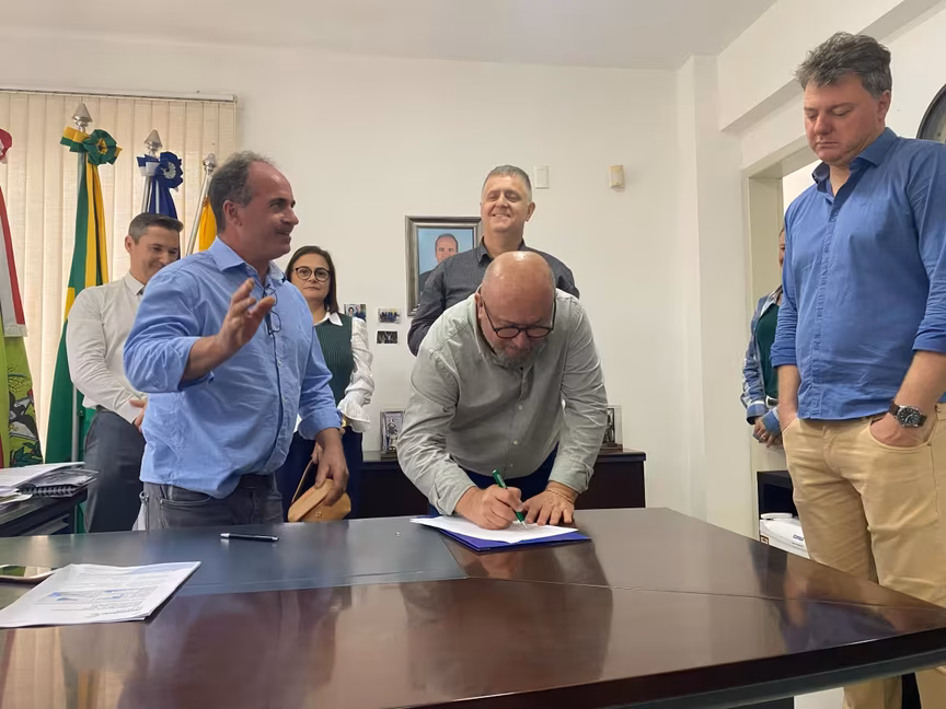 Na manhã desta sexta-feira, 15, foi assinada a ordem de serviço para o início da construção da quadra poliesportiva do projeto Sesc Comunidade em Guabiruba.