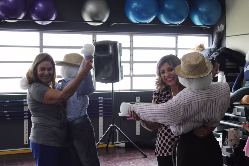 A primeira turma formada, por enquanto, é só de senhoras, mas a falta de parceiros não é problema para elas, que já estão ensaiando a coreografia que irão apresentar no espetáculo de encerramento. Para dançar com elas, o professor confeccionou bonecos de espuma, que serão vestidos e caracterizados para a coreografia de forró que será dançada pelas mulheres.