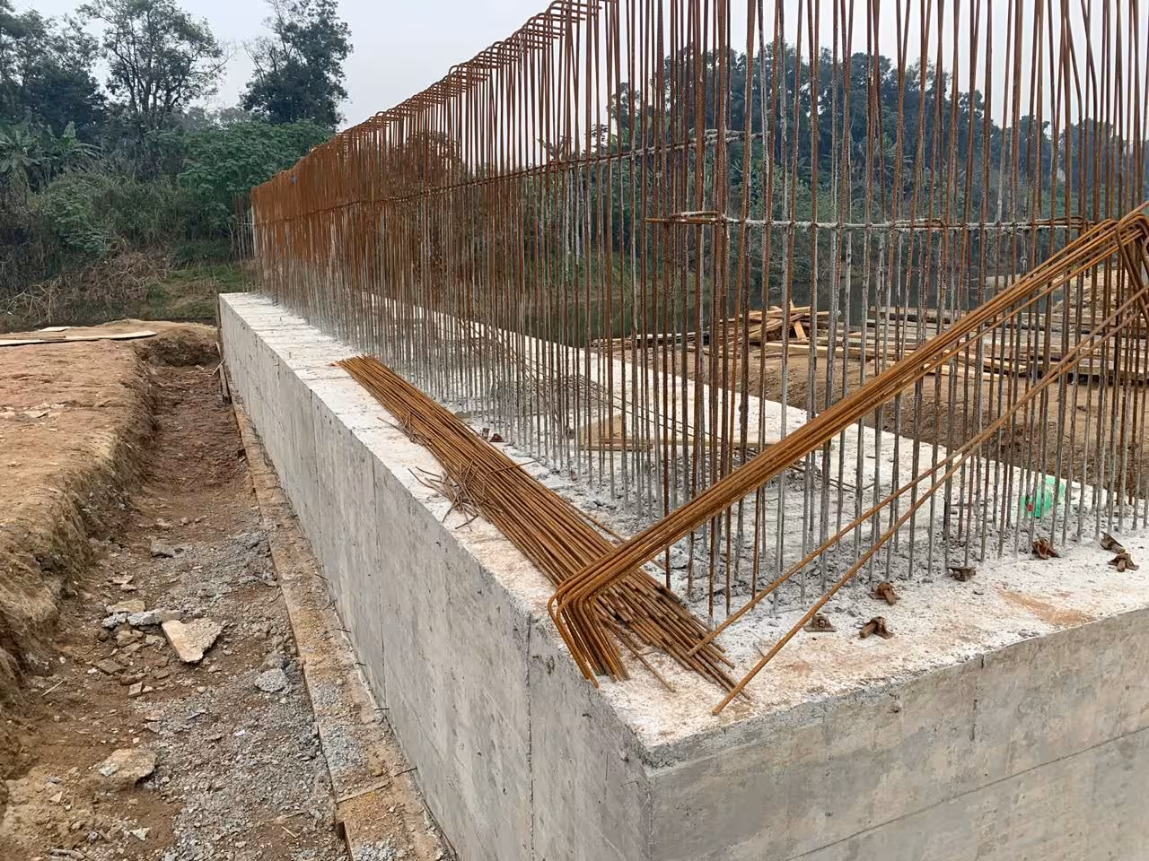 Elas são construídas nas imediações da obra, para que depois sejam instaladas sobre os blocos de fundação com o auxílio de um guindaste.