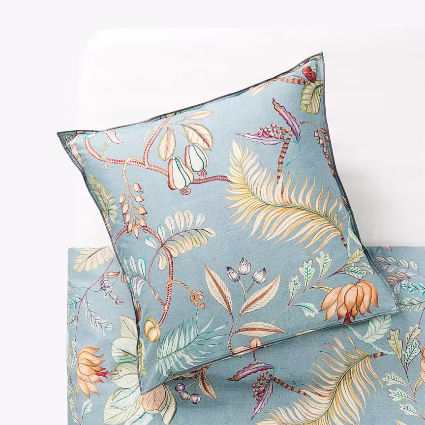A capa de almofada floral de cetim é estampada com um floral monocolor. Disponível na Zara Home por R$ 139,90A capa de edredom ramos e flores 150 fios é estampada com design de flores. Disponível na Zara Home por R$ 219,90