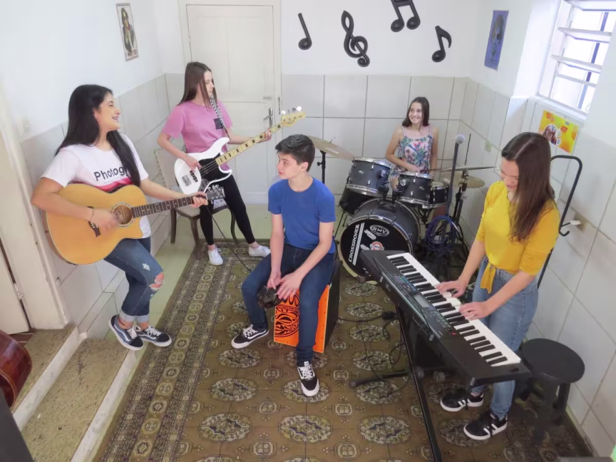 O grupo musical surgiu em outubro de 2018, em meio ao Recreio Cultural, evento interno do colégio. “Começou como uma brincadeira e esse ano ficou mais sério, começamos a nos chamar de banda”, explica Gabriela.