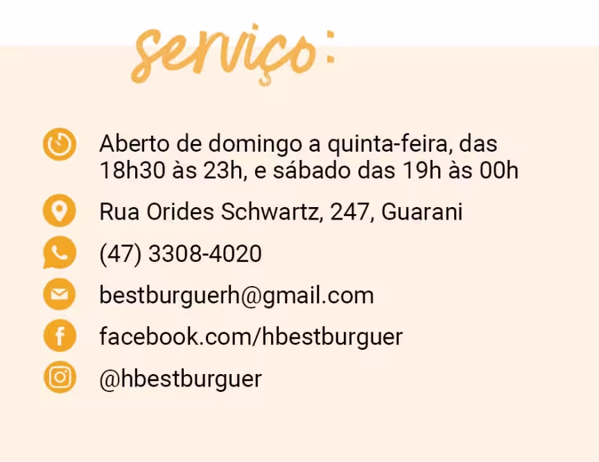 Aberto de domingo a quinta-feira, das 18h30 às 23h, e sábado das 19h às 00h Rua Orides Schwartz, 247, Guarani Contato: (47) 3308-4020