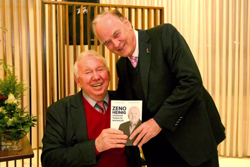 Uma merecida obra eternizada, de um brusquense que já fez muita história. O empresário Zeno Heinig conta para os escritores Ricardo Engel e Guédria Motta sua trajetória na vida empresarial e política, que rendeu o livro "Zeno Heinig – Seriedade Trabalho Inspiração". O lançamento do livro ocorreu ontem, 19, na AABB num evento prestigiado por empresários, políticos e a família do nobre biografado. O blog conversou com um dos escritores, Ricardo Engel, que conta sobre a trajetória do conterrâneo.