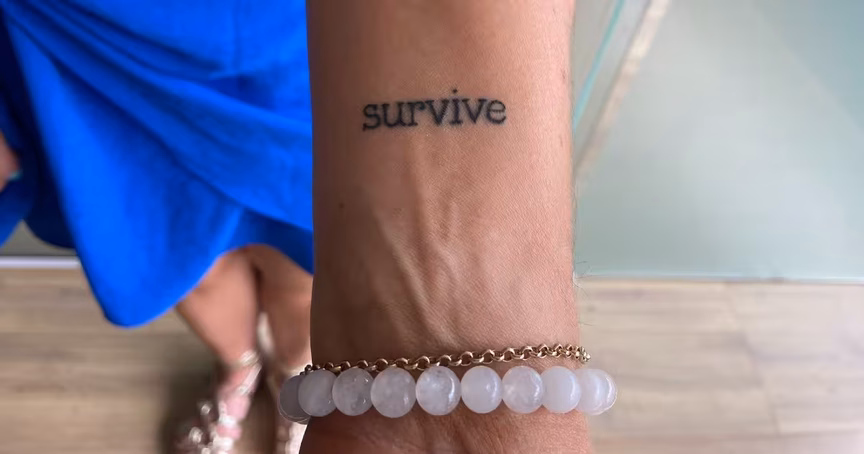 “Eu escolhi tatuar ‘survive’ porque eu não quero ser uma vítima, é pra lembrar que eu superei, que eu melhorei muito como pessoa, mudei minha postura. Hoje eu tenho pressa em ser feliz”, diz.