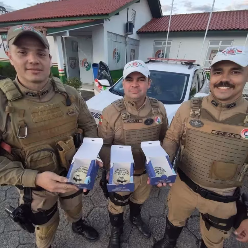 Bolos e abraços: mãe homenageia policiais que salvaram filha de ataque asmático em SC