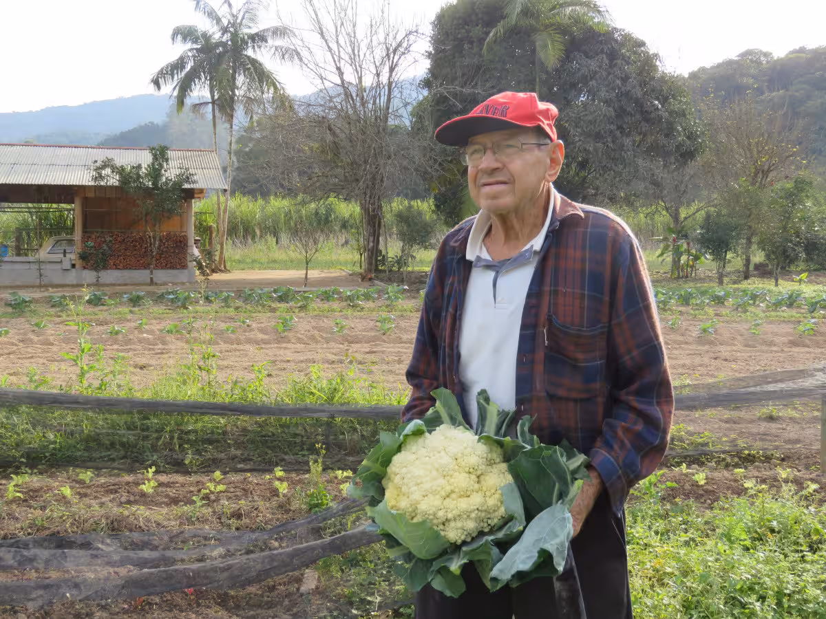 Bruno Fischer cultiva legumes e verduras na mesma área do Holstein há 78 anos