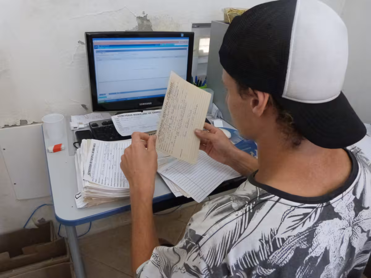 Com o arquivo atual, para conseguir encontrar o jazigo de um familiar é preciso ter o nome e a data exata do sepultamento. A demanda, segundo o coordenador, dificulta as buscas e exige mais tempo para conseguir localizar um cadastro. “É um sistema antigo, né? Hoje é tudo pelo computador. Estamos cadastrando um a um”.