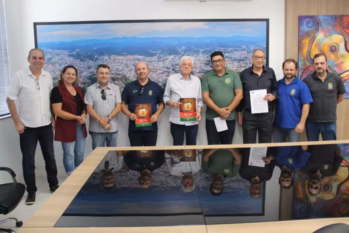 Nesta segunda-feira, 20, uma comitiva de representantes da organização e parceiros do evento compareceram ao gabinete do prefeito Jonas Paegle para assinarem o termo de cooperação com a prefeitura, que será parceira do evento que ocorre no pátio externo do Pavilhão da Fenarreco.
