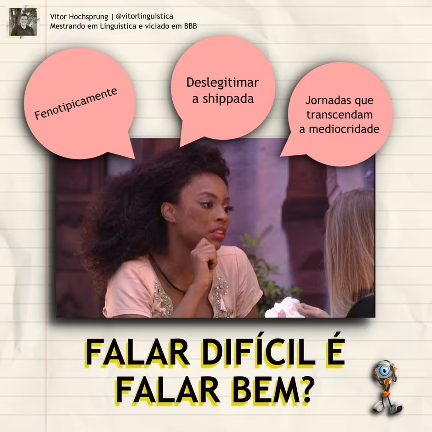 Sobre o BBB, ele conta que estava assistindo o início do reality e um dos participantes falou "eu estou procurando meus 'miójos'". "A partir disso eu comecei a refletir e decidi divulgar com a linguística", destaca Vitor.