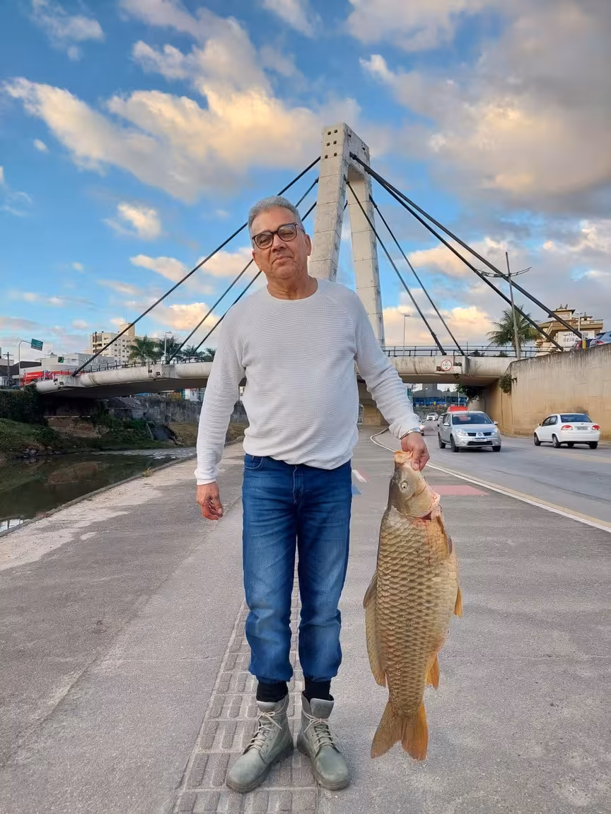 Conforme o bombeiro aposentado, a carne dessa carpas que são pescadas no Itajaí-Mirim no entorno a área central da cidade não apresenta gosto de óleo. Palavra de quem conhece do assunto, explica.