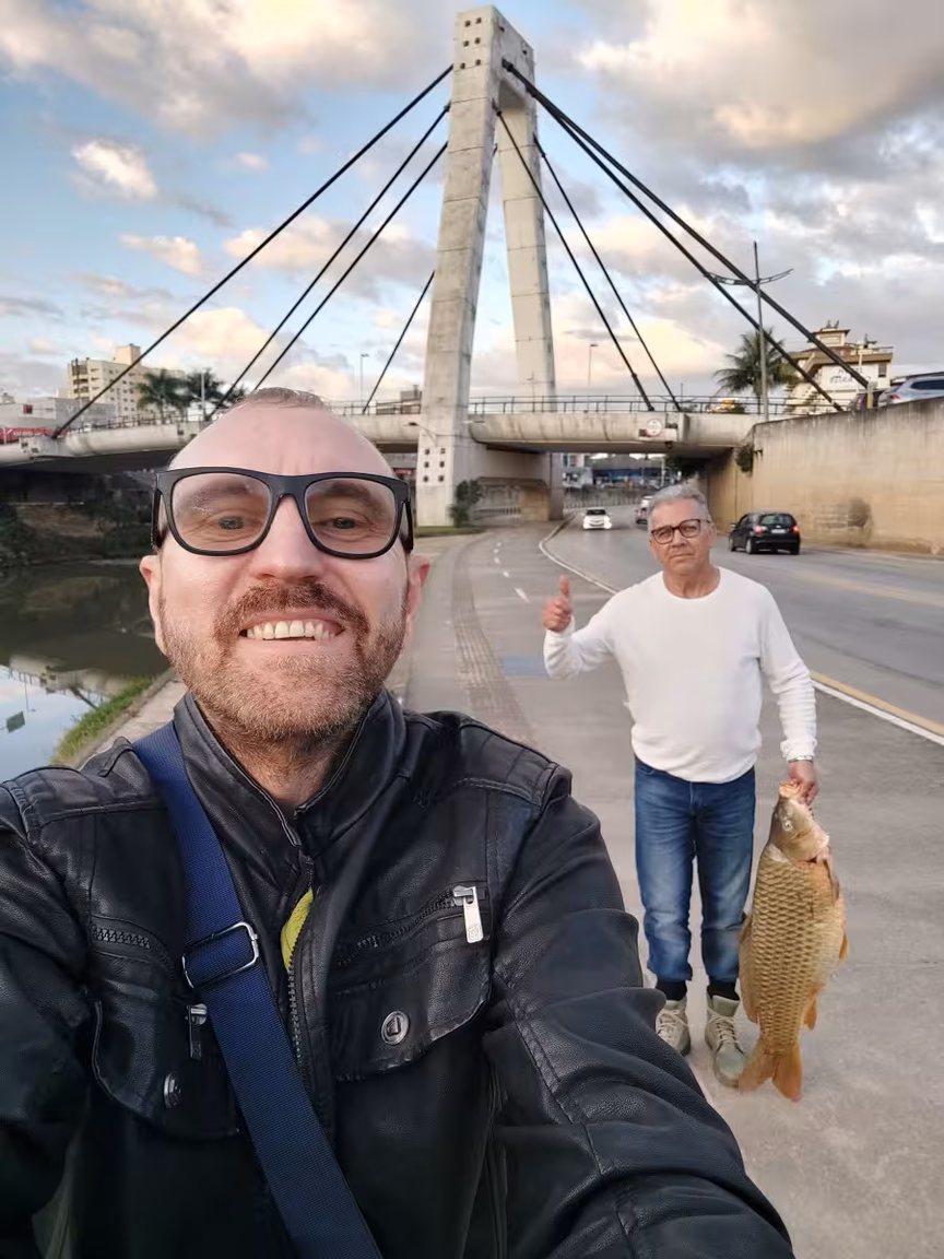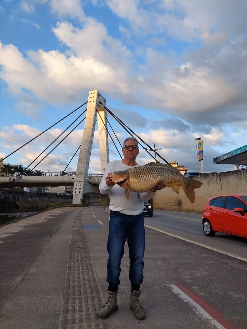 Confira mais algumas imagens da pescaria do Sr. Manoel, registradas ao final da tarde desta quinta-feira em Brusque próximo à ponte estaiada Irineu Bornhausen. Alguns pedestres que passavam pelo local paravam para ver o peixe.