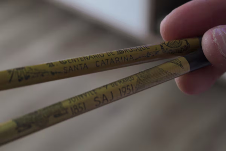 Além deste, outros lápis antigos fazem parte da extensa coleção de Lindolfo, como as edições comemorativas dos lápis de escrever feitas para o centenário de Brusque, em 1960, e também para o centenário de Joinville, celebrado em 1951. Estes dois ele ganhou de presente e guarda com carinho, afinal, são lápis únicos e que dificilmente poderá recuperar caso perca ou se danifiquem.