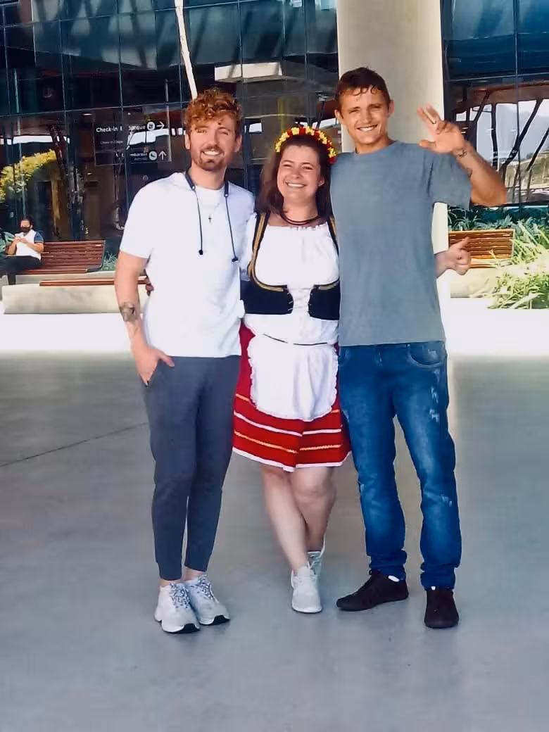 "O coração já estava apertado, eram quase dois anos longe de casa. Quando cheguei no aeroporto de Florianópolis, fui recepcionado pela minha irmã vestida de "frida", pois agora eu era oficialmente um alemão.